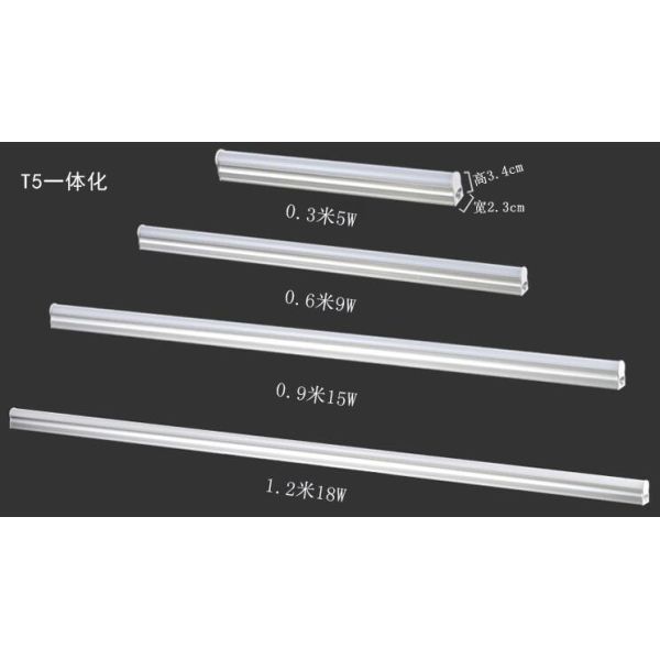 We have T5 led tube lamp and T8 led tube lamp, T5 led tube lamp is with bracket, T8 is without the bracket. T5 diameter is 16mmT8 diameter is 26mm. Both length is 30cm, 60cm, 90cm, 120cm and 150cm. Power is from 5w to 24W. Adopt Epistar SMD2835 led chips, one chip is 24-26LM, 0.2W. Which make the luminous efficiency is up to 100LM/W, also can customized 130Lm/W. The cover is clear cover and milky cover, Input voltage is AC85-265V, housing is aluminum material, better heat dissipation with low heat. The led driver is IC constant currenct, longlife span and very safety driver solution. We provide 2 years warranty.